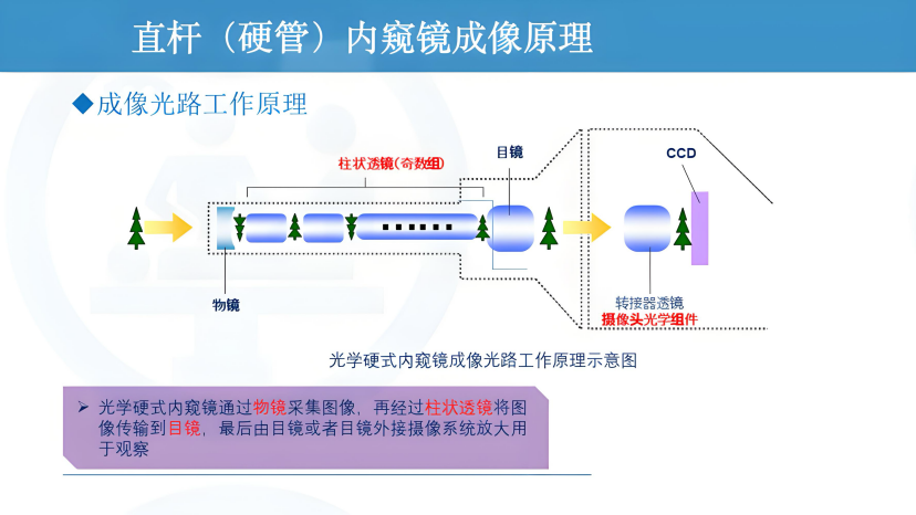 变焦光学直杆内窥镜最核心的价值,在于其保留了传统光学直杆内窥镜赖以成名的纯粹光学成像路径。这条路径由三个关键部分组成: